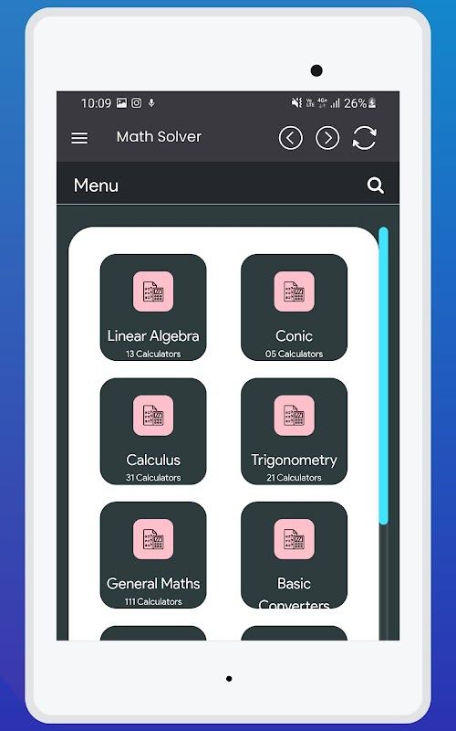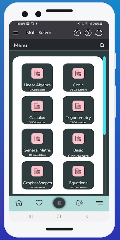 Solves various Math Problems, Math Solver includes a lot of mathematics topics such as geometry, analytic geometry, equations and inequalities, quadratic function, linear function, linear system, circle equation, math sequences, algebra, vectors, General Maths (with Steps), Basic Converters, Probability, Complex Numbers, Inbuilt Calculator and many more.