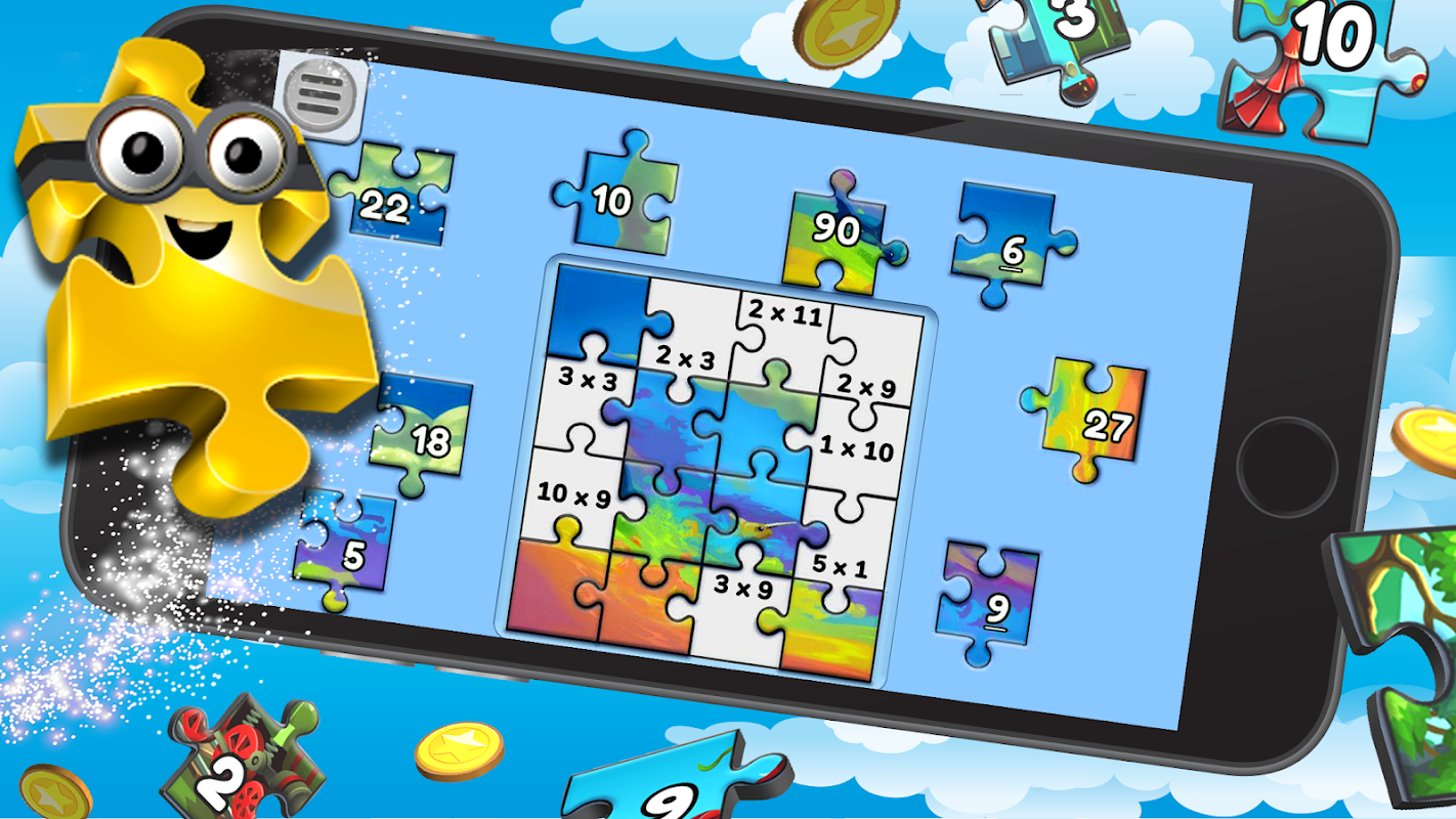 تعلم جمع وطرح، ضرب وقسمة مع لعبة jigsaw puzzles للألغاز المخصصة للأطفال! أكثر من 100 لعبة ألغاز حسابية للاختيار من بينها. ألعاب بنات وأولاد معًا!