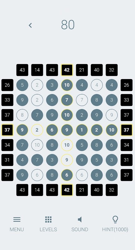 There's a board with full of numbers. Tap the numbers to make sums in rows and columns to predefined numbers. The board is in different size, which reflects difficulty levels: