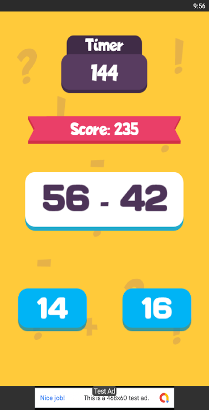 اختبار الرياضيات لعبة ممتعة ومليئة بالتحديات. أجب عن الإجابة الصحيحة لجمع النقاط وقضاء وقت أطول. العب وتحدى أصدقائك وعائلتك للحصول على أعلى الدرجات!