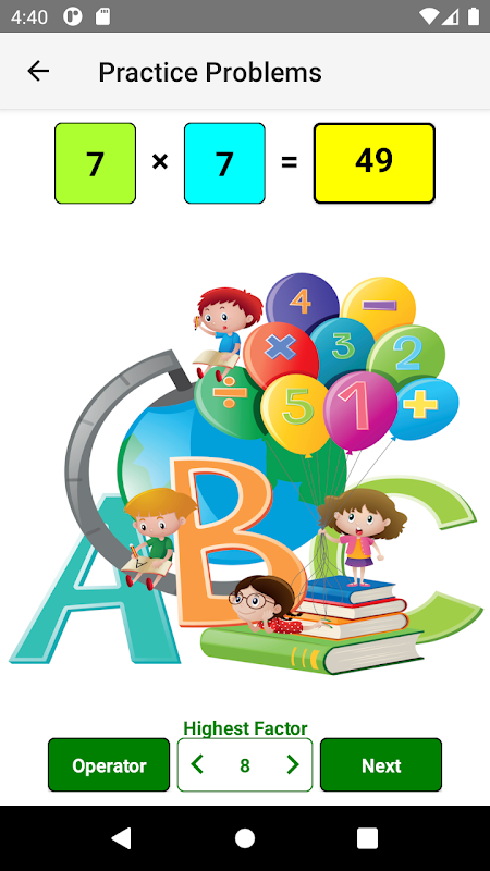 Math Scholar هو تطبيق تعليمي ممتع يساعد الأطفال بشكل كبير على صقل مهاراتهم في الرياضيات! والغرض الرئيسي منه هو بناء خبرة في الرياضيات الذهنية من خلال استخدام واجهة بسيطة ومسلية. تم تصميمه في الأصل لتدريس جداول الضرب ، وتم توسيعه ليشمل جداول لجميع العمليات الحسابية الأساسية الأربعة. بالإضافة إلى هذه الجداول ، فإنه يتضمن كلا من وضع الاختبار ووضع التمرين.