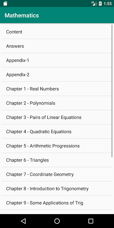 كتاب الرياضيات الصف العاشر مع جميع الفصول. هذا هو تطبيق كتاب الرياضيات العاشر الذي يحتوي على كل فصل من 10 رياضيات مع حلول وسؤال وجواب. تطبيق كتاب الفصل العاشر للرياضيات يساعد الطلاب والمدرسين على تدوين الملاحظات والمفاهيم الضئيلة لامتحان CBSE و NCERT. هذا التطبيق الكتابي للفئة العاشرة مفيد أيضًا لكل من مرشحي امتحان مجلس الولاية والمجلس المركزي لبناء مفاهيمهم في الرياضيات. NCERT نصي كتاب الرياضيات للصف العاشر في اللغة الإنجليزية.