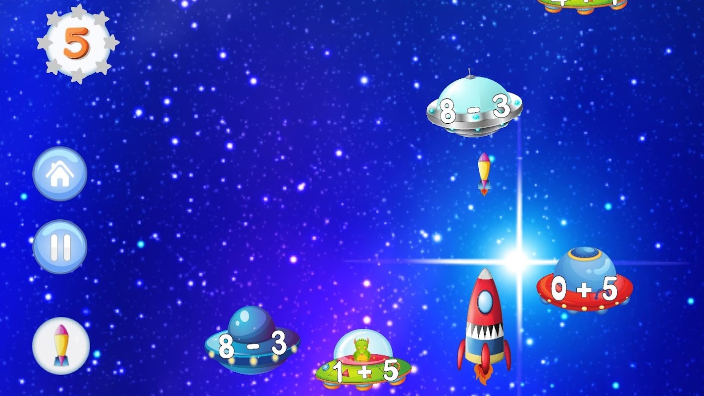The aliens are coming to take over the Earth. Help our protagonist recover the various components of the cannon, the space suit and the spaceship to defend the Earth. To get them you will have to follow the path and solve fun math games with addition, subtraction and multiplication.