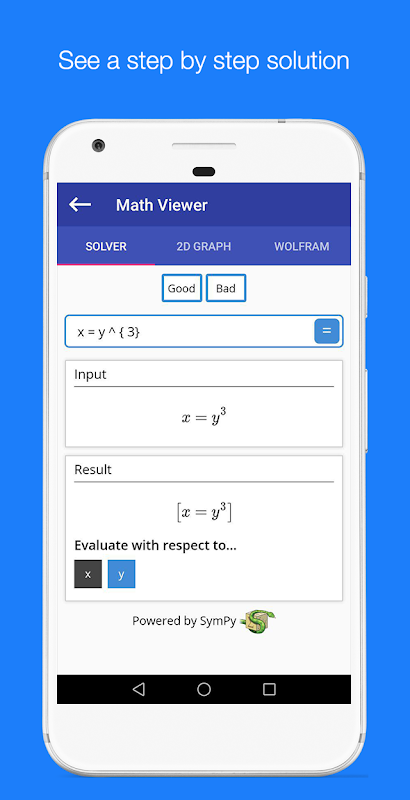 Mathpix uses Desmos to provide best in class interactive graphing. Mathpix also shows you step-by-step solutions to calculus problems, guiding you to the solution with simple, effective instructions. Step by step solutions for algebra are coming soon!