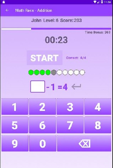MathRace: Addition هي لعبة رياضيات بسيطة وممتعة مصممة لمساعدة الطلاب على تحسين مهاراتهم في الجمع والطرح. في كل لعبة، يجب على اللاعب إيجاد الرقم الصحيح للعملية الحسابية لكسب النقاط. يعتمد مجموع النقاط المكتسبة على عدد الإجابات الصحيحة وسرعة الحل. مع تقدم اللعبة في كل مستوى، تزداد صعوبة العمليات الحسابية. في نهاية كل لعبة، يعرض التطبيق الأخطاء التي ارتكبها اللاعب. اللعبة مجانية، ولكن قد تظهر بعض الإعلانات عند إكمال كل مستوى.