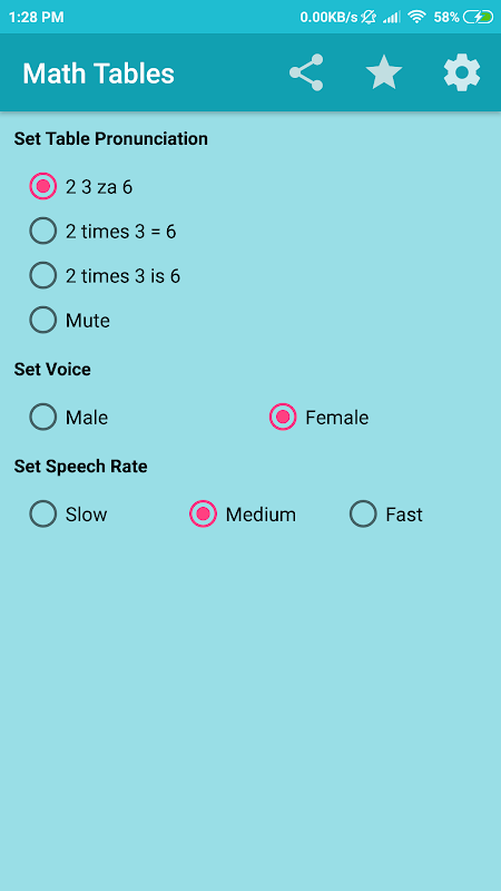 Math tables from 1 to 100 have been added, just select one table and 10 or 20 multiples will be shown and audio will be played to make learning quicker.
