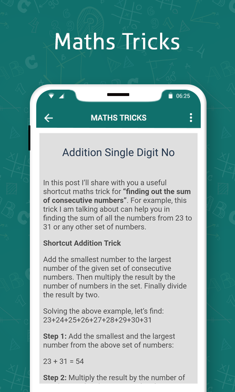الحيل الرياضيات يعلمك الأساسية الحيل والرياضيات ، والحيل الفيدية الرياضيات والحيل المرح والرياضيات المنطقية. ويشمل أيضا ممارسة ألعاب الرياضيات.