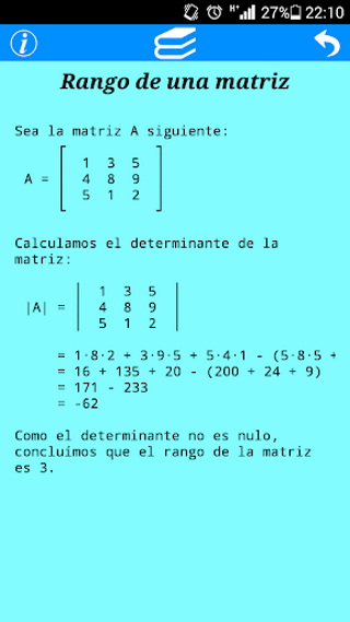 هذا التطبيق من Editorial Editex S.A. يؤدي العمليات الأساسية مع المصفوفات. ويشمل الأقسام التالية:
