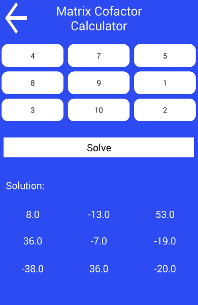 هذه الأداة مفيدة جدا للطلاب من جميع مستويات التعليم. مصفوفة العامل المساعد هي مصفوفة تتكون من القاصرين من المصفوفة الأصلية. مصفوفة القصر هي محدد للمصفوفة مربع شكلت عن طريق حذف صف واحد وعمود واحد من مصفوفة مربع كامل. وهذا مطلوب لكثير من العمليات مع مصفوفة، مثل العثور على عكس مصفوفة.