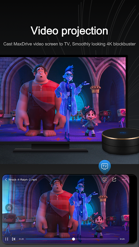 Large-screen display. A better visual experience to view photos stored in MaxDrive on TV.