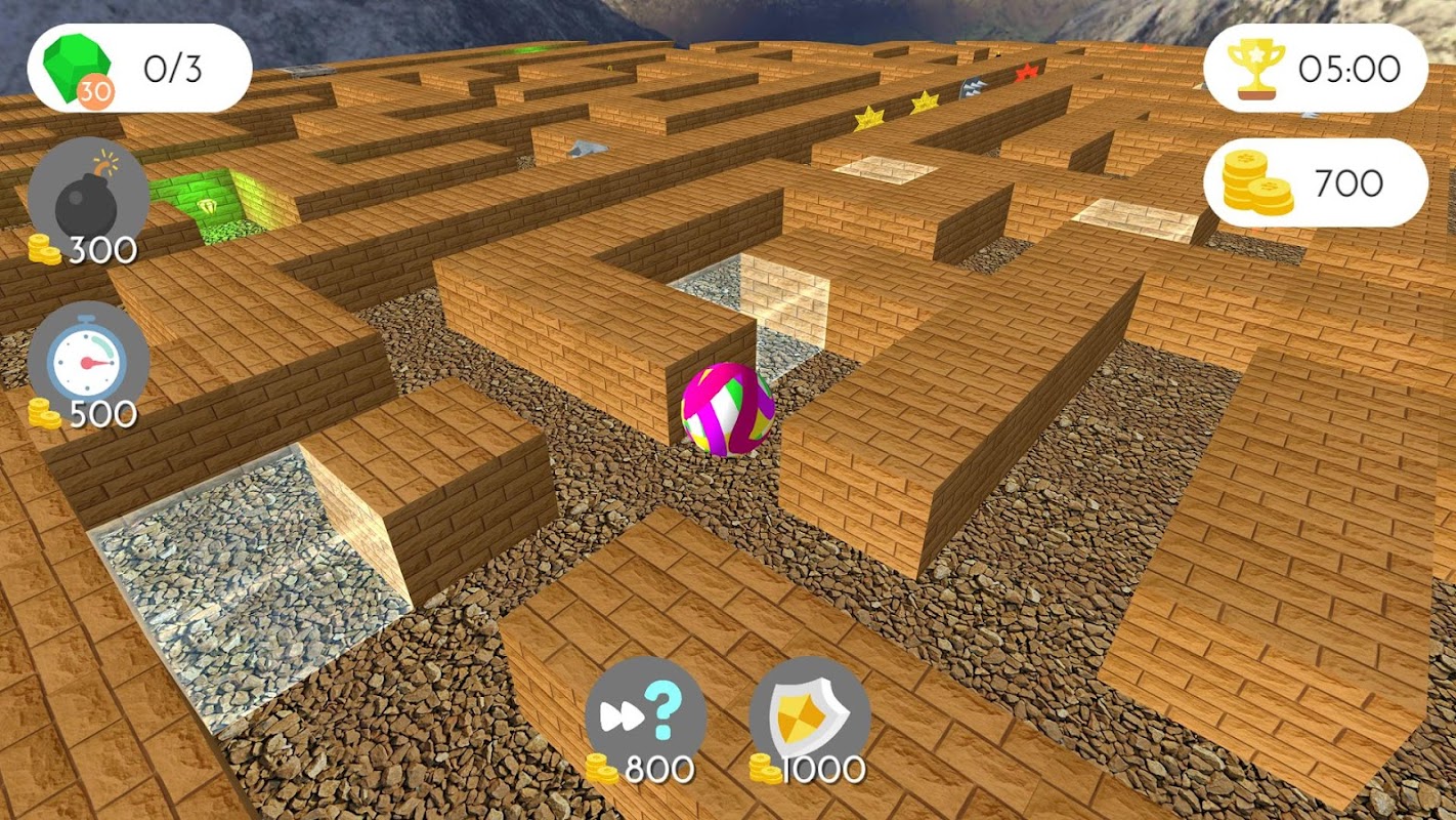 It is very easy to control the ball using virtual keys, you’ll learn it in no time. In the left bottom area, you can choose a viewing angle for the maze.