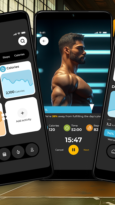 Melbat Sport Tracker هو تطبيق حديث للياقة البدنية مصمم لأولئك الذين يرغبون في التحكم في نشاطهم البدني وتتبع التقدم بذكاء. منذ اللحظات الأولى، يتم الترحيب بك بشاشة رئيسية تعرض خطواتك والسعرات الحرارية المحروقة وتكرار التمارين. يمكنك أيضًا إضافة نشاط رياضي جديد عن طريق الاختيار من البرامج الشائعة أو إدخال النشاط الخاص بك يدويًا — على سبيل المثال، "كرة القدم" أو "الملاكمة".