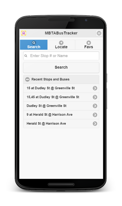 MBTA حافلة المقتفي هو تطبيق ويب المحمول التي تتيح للمستخدمين بوسطن MBTA حافلة لعرض الأوقات دقيقة وصوله استنادا على متن حافلة الإحداثيات وروافع مدينة تغذية البيانات المفتوحة في بوسطن.
