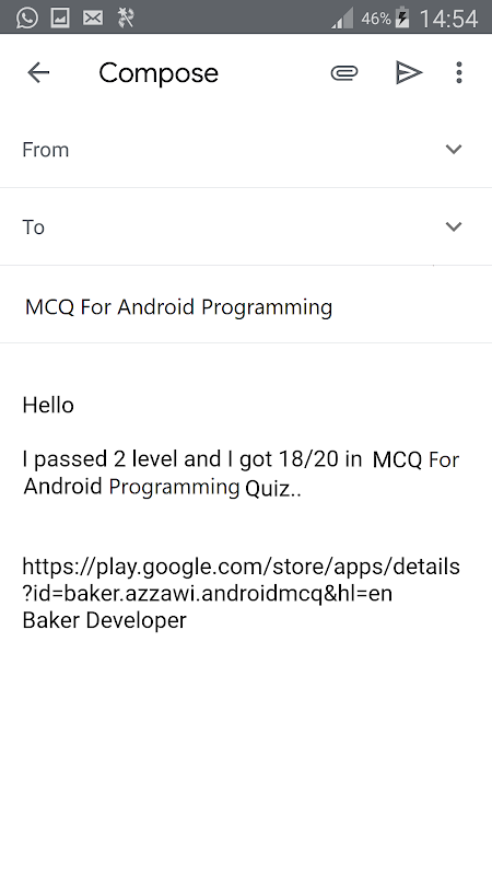 يساعد هذا التطبيق الطلاب والمهنيين على تحديث مفاهيمهم الأساسية حول تطوير تطبيقات أندرويد والبرمجة ، ويحتوي التطبيق على عينة من MCQ's على برامج android والتي تم تقسيمها إلى 10 مستويات. سيعطي كل مستوى 10 أسئلة تم اختيارها عشوائيًا ، ولكل منها 4 إجابات.