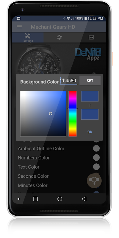✔ منتقي الألوان لتحديد أي لون تريده للخلفية وعقارب الساعة والنص والأرقام