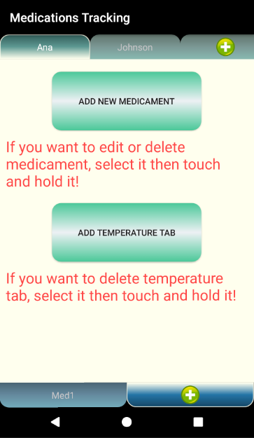 With Medications Tracking you can track what you took and when. You can set an alarm so you do not miss taking the medicine. And you can do that for more then one person. You can add as many people as you want and keep track of their medications.