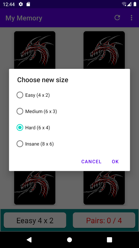 لعبة الذاكرة هي تطبيق تم إنشاؤه بمساعدة برنامج تعليمي على اليوتيوب.