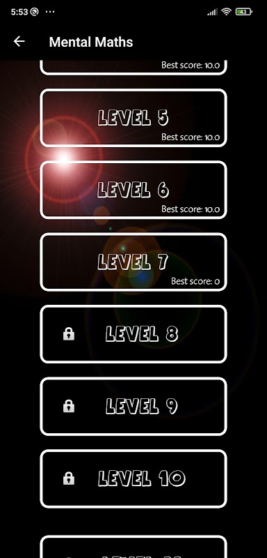 It is a calculation game that will test your mental agility, you will have to be quick and answer correctly to unlock the levels. In the 20 available levels you will find addition, subtraction, multiplication and division of whole numbers. Will you pass all the levels?