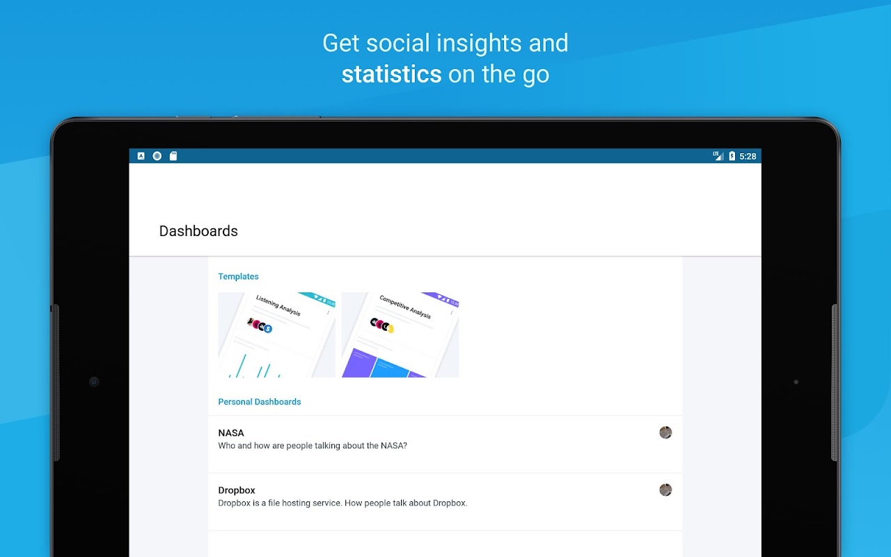 - Smart actions: Connect your social accounts and react to any mention the smart way. Retweet a tweet that mentions you, share on facebook any positive article about your company