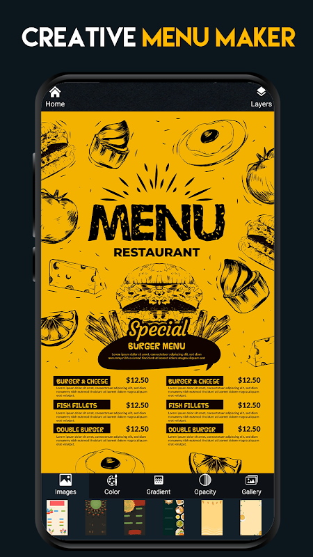 قم بإنشاء قائمة لمقهاك أو مطعمك باستخدام صانع قائمة. تخصيص قوالب القائمة. سريع وسهل الاستخدام. ليست هناك حاجة إلى مهارات تصميم بطاقة القائمة.