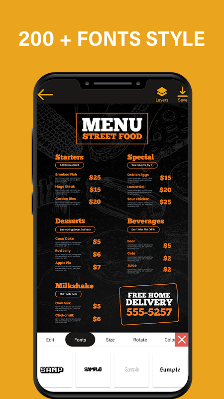 - قم بتصميم القائمة والشعار الخاص بك بسهولة وسرعة وفقًا للنمط القديم
