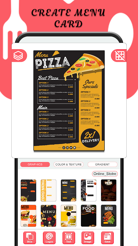 تبدأ الرحلة بلوحة قماشية فارغة، وهي عبارة عن طاولة رقمية سيتم عرض إبداعاتك الطهوية عليها. مع وجود مجموعة من ميزات التصميم في متناول يدك، بما في ذلك القوالب والخطوط وأنظمة الألوان، لديك الحرية في التجربة والتكرار والابتكار حتى تعكس القائمة الخاصة بك أجواء وموضوع تجربة تناول الطعام الخاصة بك. سواء كنت منجذبًا إلى التصميمات البسيطة التي تعكس الأناقة مع الخطوط الواضحة والطباعة البسيطة، أو التخطيطات الجريئة والملفتة للنظر والتي تجذب الانتباه بألوان نابضة بالحياة ورسومات مذهلة، فإن تطبيق صانع القائمة يمكّنك من إنشاء قائمة تمهد الطريق لـ تجربة طعام لا تنسى.