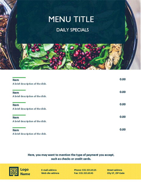 أطلق العنان لإبداعك من خلال تخصيص هذه القوالب حسب رغبتك، وتخصيصها بدقة حسب تفضيلاتك. سواء كنت تقوم بإنشاء قوائم للمطاعم، أو المقاهي، أو المناسبات، أو أي مشروع طهي، فإن مستودعنا يضم مجموعة واسعة لتناسب كل الأذواق والمتطلبات.