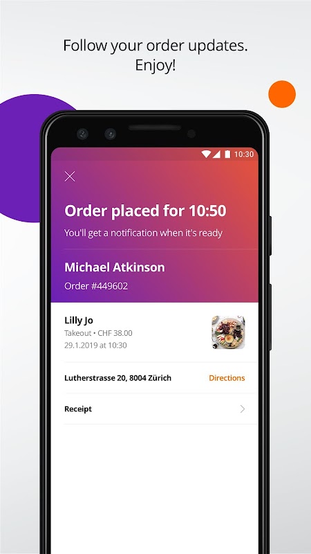 تنتظر الطلبات الموضوعة مع موظفي الخدمة داخل تطبيق MENU ويمكنك تسوية فاتورتك في غضون ثوان عندما تكون مستعدًا للمغادرة.