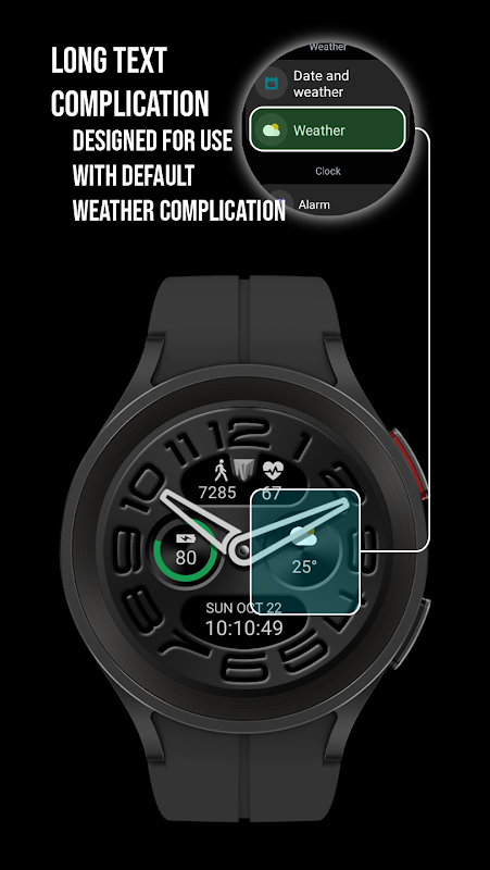 واجهة ساعة ذكية أنيقة تناظرية/رقمية هجينة من WearOS، مصممة خصيصًا لنظام Wear OS، مع ميزات مضمنة: