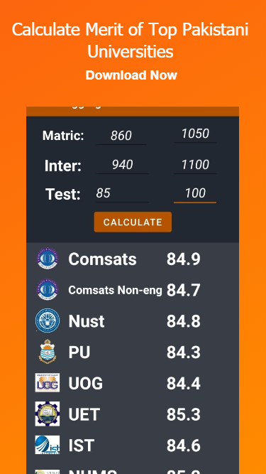 حاسبة الجدارة وآلة حاسبة مجمعة لجميع الجامعات Comsats Nust FAST