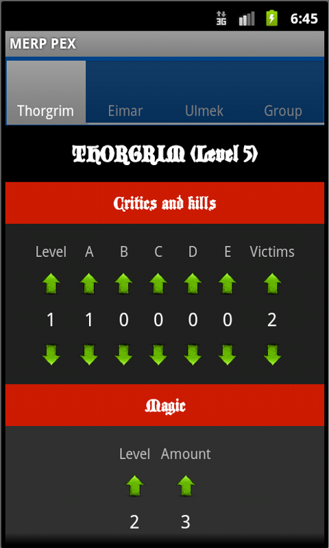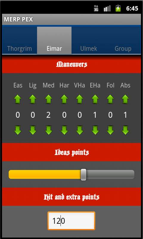 التطبيق لسيد الخواتم MERP الماجستير. فهو يساعد على حساب نقاط الخبرة لكل مغامرة دون أي آلة حاسبة أو الجدول. ويغطي حتى مستوى 25 لأحرف و 75 مستوى للمخلوقات. إذا كنت Rolemaster أو MERP DM، سوف تستمتع بالتأكيد ذلك.
