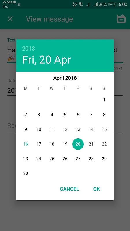 The program is designed for scheduling SMS sending at expected time. The application silently assists you and won't bother when you have limited time. On message creation you set date and time when the system has to send it. The scheduler can be useful either you're going to deliver birthday greetings in several days or you intend to remind some of your colleagues to do important things tomorrow morning.