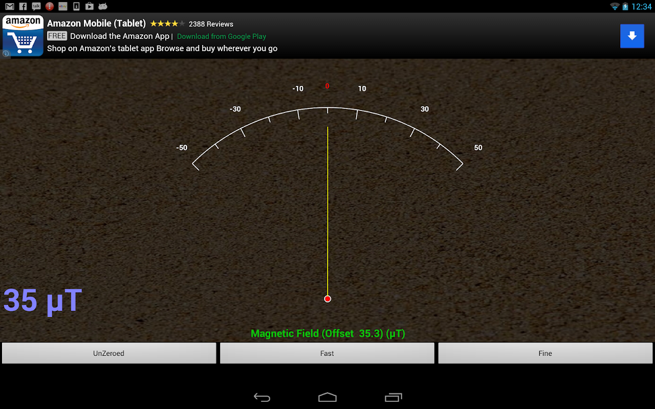 Uses the built in magnetometer to show the magnetic field near the Android phone or tablet. Three metering speeds: Fast, Medium, Slow plus Zero offsets, two scales.
