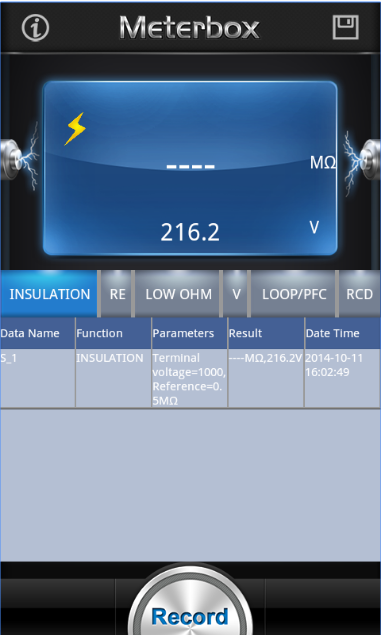 Meterbox iMIT for Android app is the professional industry software, which provides insulation resistance,earth resistance, loop impedance,voltage,RCD,PFG and PSC testing by CEM Multifunction Installation Tester DT-6650 via Bluetooth, for ensuring the safety of electrical installations in domestic,commercial and industrial application, for fixing wiring is safe and correctly installed. Meterbox iMIT app enhances user experience about visualization, measuring scene, data logging, data comparing & data sharing.