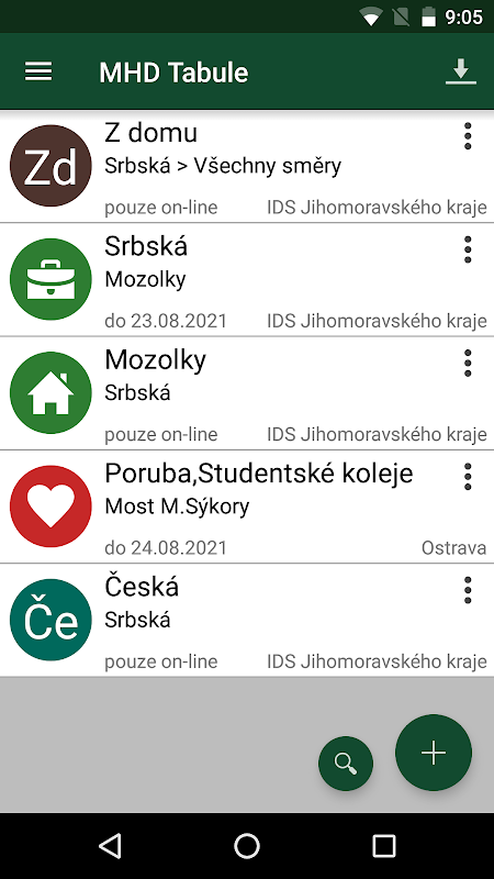 يحتوي التطبيق على جداول زمنية للنقل العام وأنظمة نقل متكاملة في جميع أنحاء جمهوريات التشيك وسلوفاكيا (وسائل النقل العام في براغ ، ووسائل النقل العام في برنو ، ووسائل النقل العام في براتيسلافا ، ووسائل النقل العام في كوشيتسه ، ووسائل النقل المتكاملة في براغ ، و IDS لمنطقة جنوب مورافيا ، والنقل العام أوسترافا ، وبلسن ، Olomouc و Liberec و Ostí nad Labem و České Budějovice و Hradec Králové و Pardubice وغيرهم).