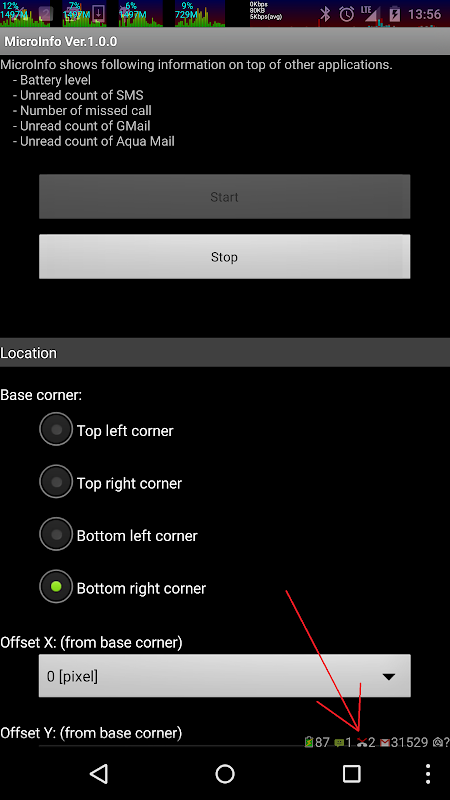 مايكرو معلومات تبين عدد من مكالمة لم يرد عليها، عد غير مقروء من SMS / جوجل / أكوا البريد.