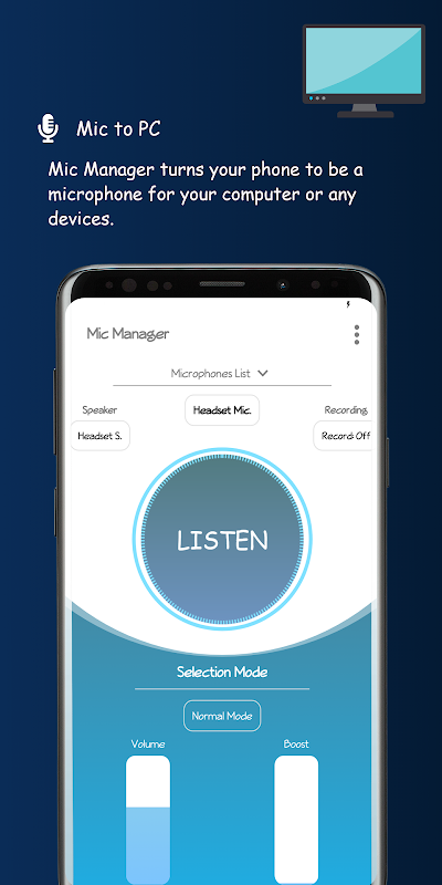 يقوم **Microphone Manager** بتحويل هاتفك إلى 🎤 لجهاز الكمبيوتر أو لأي جهاز آخر. يمكنك استخدامه للدردشة الصوتية، والتسجيل، والتعرّف على الصوت. تمامًا مثل أجهزة الميكروفون الحقيقية!