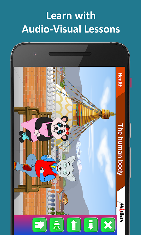 ✓ साना नानीबाबुहरूको लागि Cartoon Character प्रयोग गरेर रमाइला Video Lesson हरू तयार पारिएको छ। जसले गर्दा उनीहरू Cartoon Film हेरेजस्तै रमाउँदै हेरेर आफ्नो पाठ सजिलै सिक्छन्।