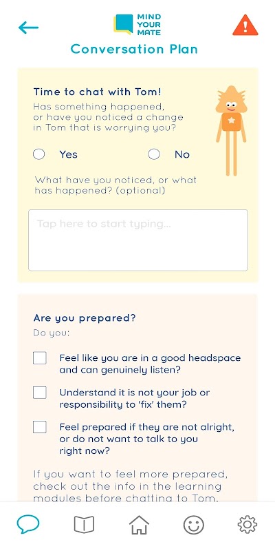 Mind Mind Mate متاح حاليًا للأشخاص الذين يشاركون في تجربة Mind Mind Mate البحثية التي أجراها مركز Matilda في جامعة سيدني. يهدف هذا التطبيق إلى مساعدة الشباب على دعم الأصدقاء الذين يمرون بأوقات صعبة بشكل أفضل.
