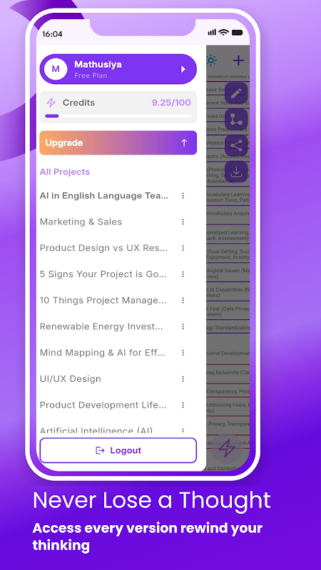 يقدم MindMap AI تجربة رسم خرائط ذهنية سريعة وبسيطة مع واجهة مستخدم نظيفة.
