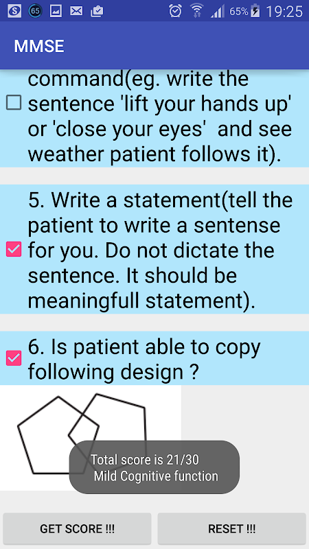 Forget to see books, now the MMSE score is on your finger tips.User friendly interface to the cognitive function assessment scale. Buy and have life time update to MMSE app..more feature will be added in later versions.