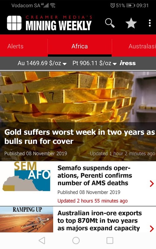 كريمر وسائل الاعلام التعدين أسبوعي التطبيق، بنيت على العمود الفقري للwww.miningweekly.com