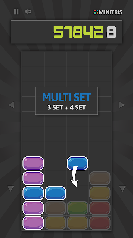 Minitris هي لعبة ألغاز بأسلوب الكتل المتساقطة مع تطور ، تم إنشاؤها خصيصًا للاعبين من جميع الأعمار والمهارات. جميع الكتل لها نفس الشكل المربع البسيط ، ولكنها تختلف في اللون. هدفك هو مطابقة ثلاث كتل أو أكثر من نفس اللون في خط أفقي أو رأسي أو قطري لمسحها.