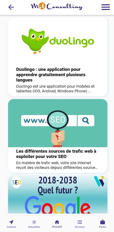 Mit-Consulting هي شركة تطوير مقرها وجدة. هدفها هو تقديم خدمة عالية الجودة للشركات التي ترغب في تعزيز عمليات الاتصال الخاصة بها وإدارة أنشطتها.