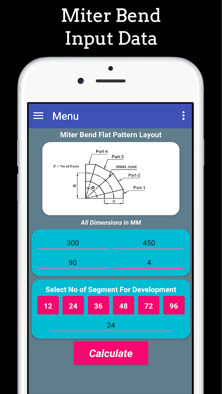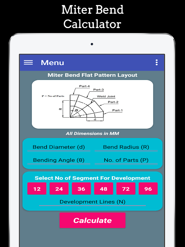 في هذا التطبيق ، يمكنك إنشاء تخطيط وفقًا لمتطلباتك من خلال تقديم مدخلات مثل القطر ، بيند دائرة نصف قطرها ، أجزاء بيند ، وزاوية الدوران. إذا كنت تريد وضع علامات تخطيط على Flat Plat ، فعليك وضع قطر الإدخال على أنه متوسط القطر أو إذا كنت ترغب في تخطيط وضع العلامات مباشرةً Pipe ، ثم ضع قطر الإدخال كـ Diameter القطر الخارجي لمزيد من الدقة.