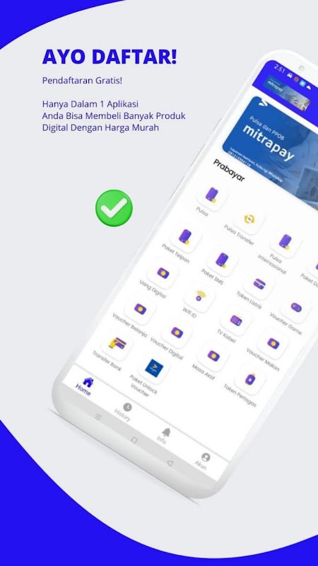 Mitrapay pulsa dapat melakukan seluruh transaksi dalam satu aplikasi Mitrapay pulsa secara aman.