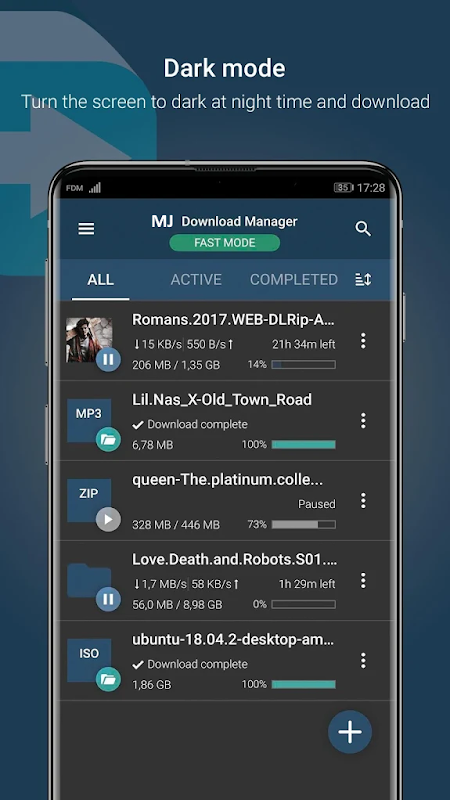Mj Download Manager can quickly download many types of files from Internet to your phone or tablet Android. You can pause, resume, restart and cancel any download. It automatically detects links from the Web browser, so you do not need to copy and paste them in the app.