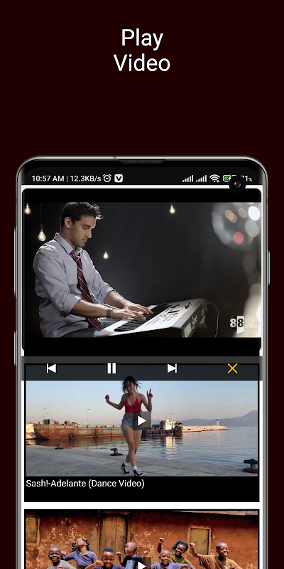 توجد مقاطع الفيديو في شكل قائمة عمودية داخل مشغل فيديو MK.
