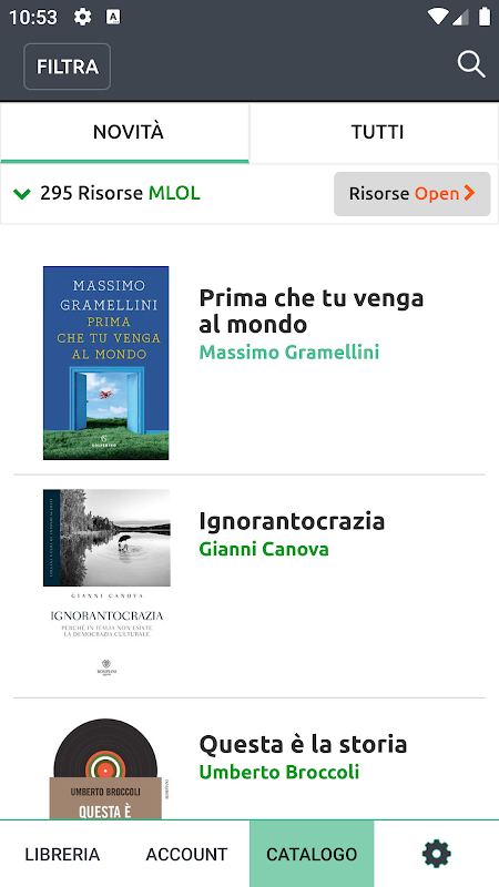 Completamente rinnovata rispetto alla versione precedente, l’applicazione consente di ricercare e prendere in prestito ebook dai cataloghi dei servizi MLOL, MLOL Plus e MLOL Scuola: sarà sufficiente effettuare il login (al primo accesso oppure nelle impostazioni) con le credenziali con cui accedi anche ai nostri siti.