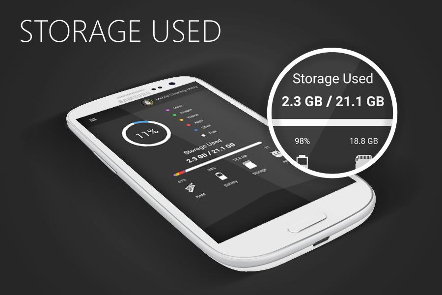 Storage Display – A full storage including images, videos, music, applications, and other files will be displayed with options for deleting files. Every file can be viewed from inside the Mobile Cleaning Utility, no matter the format.